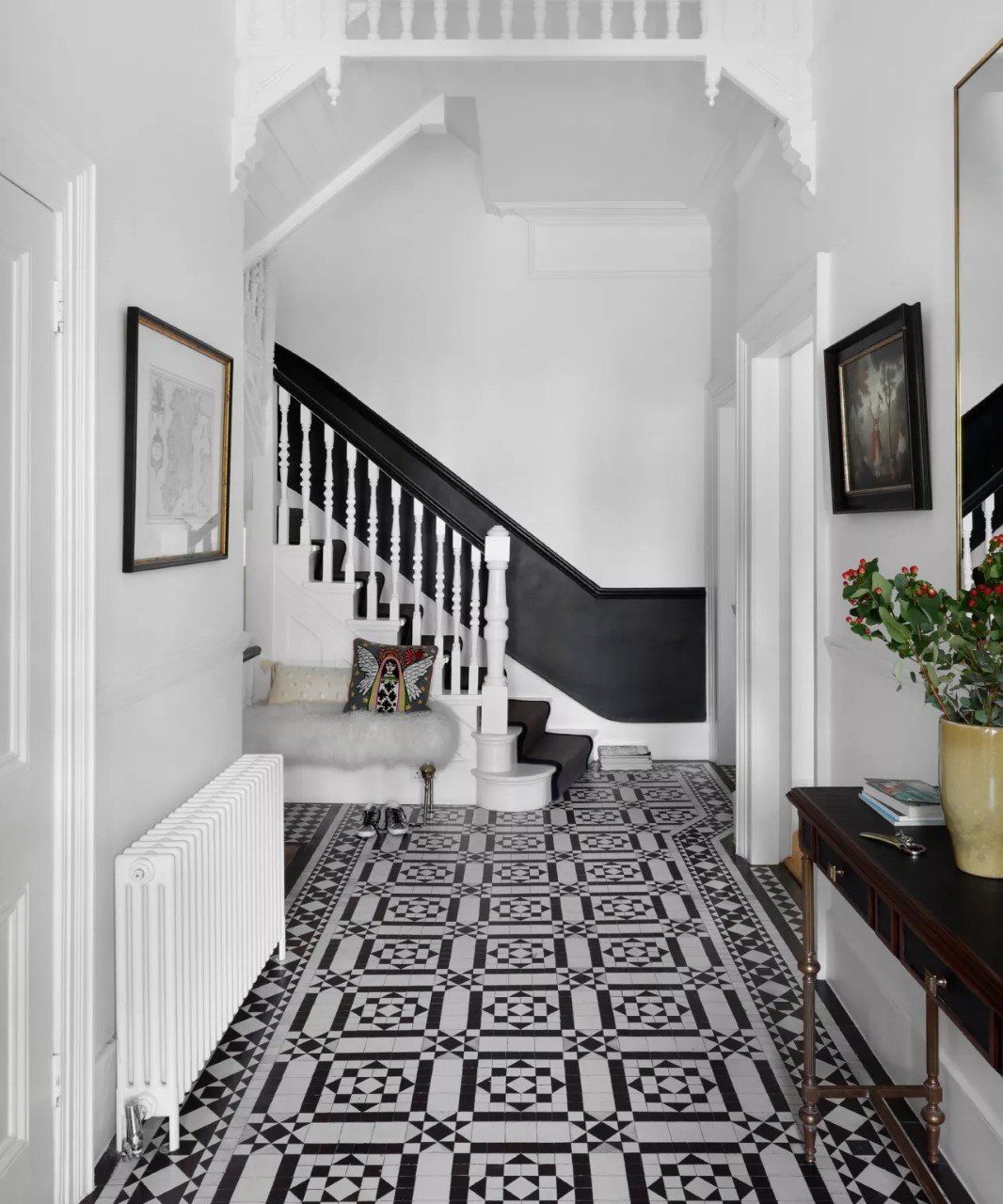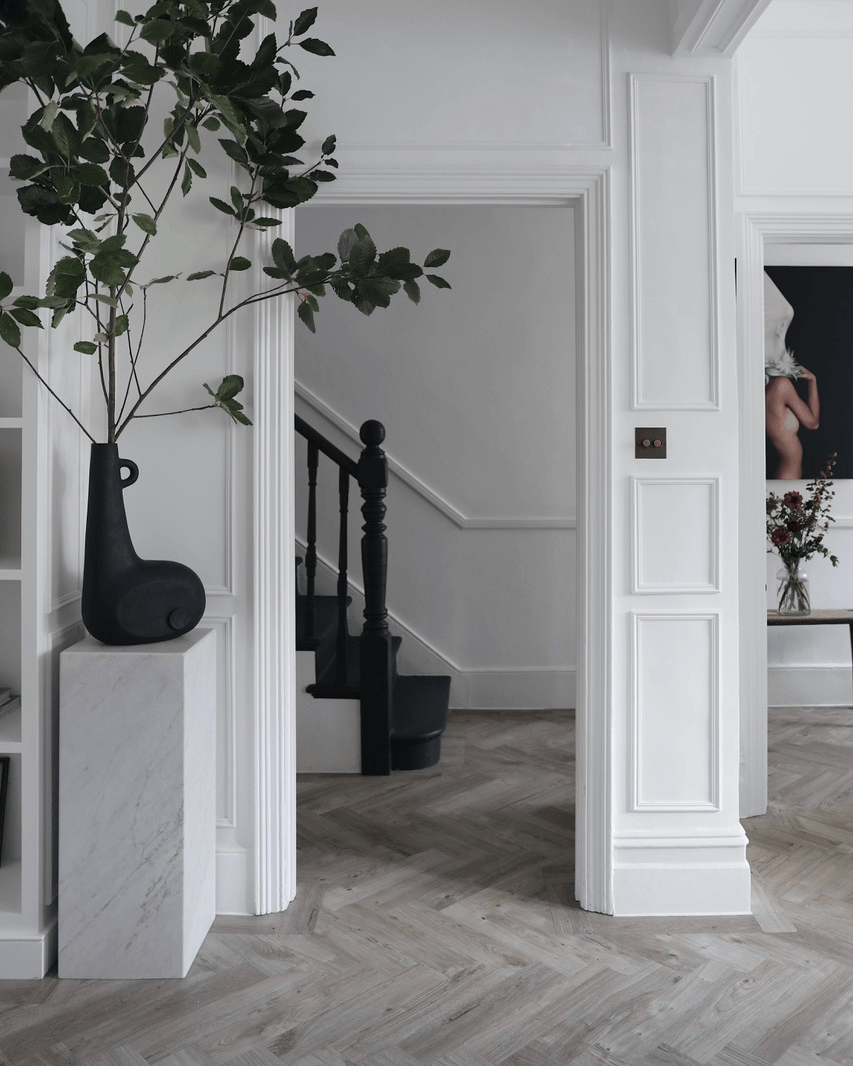 Black accents you can add in neutral spaces, that can add dimension are furniture, home accessories and framing (doors & windows). One of the most striking uses of black would be flooring. The classic black and white tile look is something that is trending and when used in the hallway, can be a stunning first impression for those entering your home.